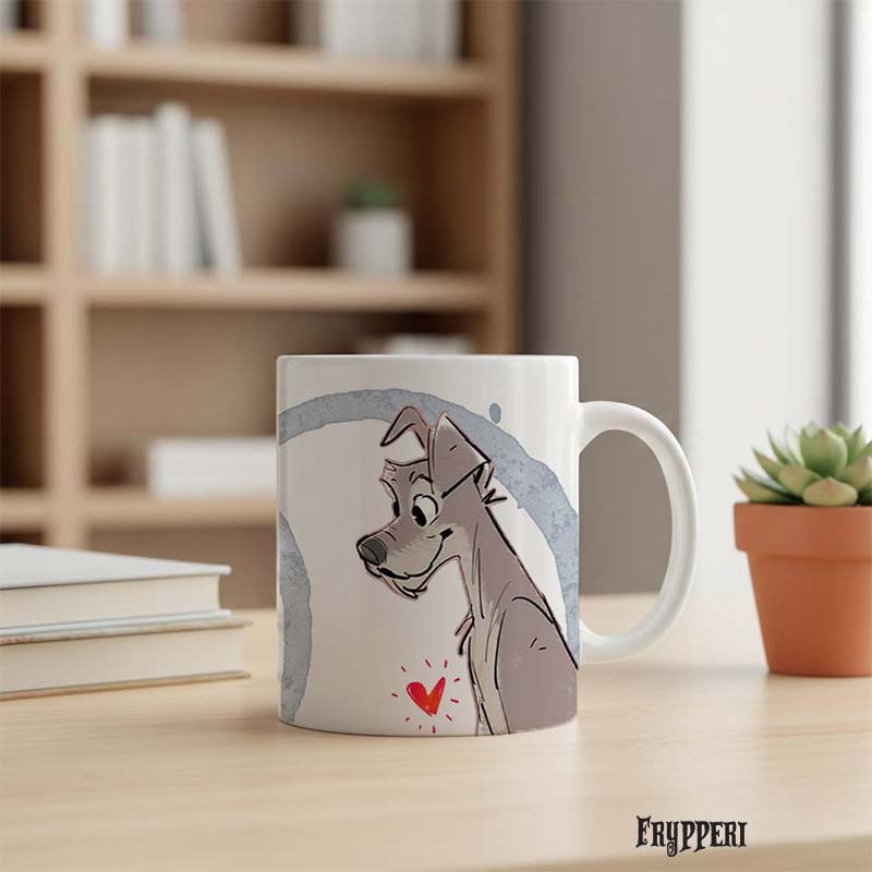 Tazza San Valentino Lilli e Vagabondo realizzata completamente a mano – Fan Art!